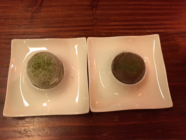 And my companion took two Miniature Motchi, one with Matcha (Matcha Ice cream) and the other with Chocolate Ganache and dust cacao with a Sencha Tea…