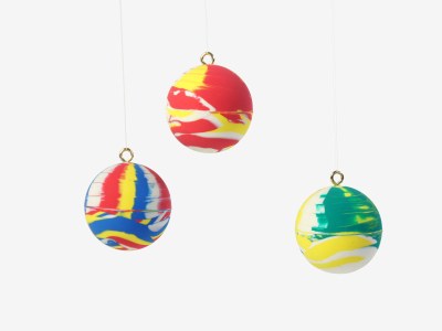 I like the idea of Sebastian Bergne, the Bouncy Bauble, they are colorful, pretty and when they touch the floor instead of break they bounce! 🙂