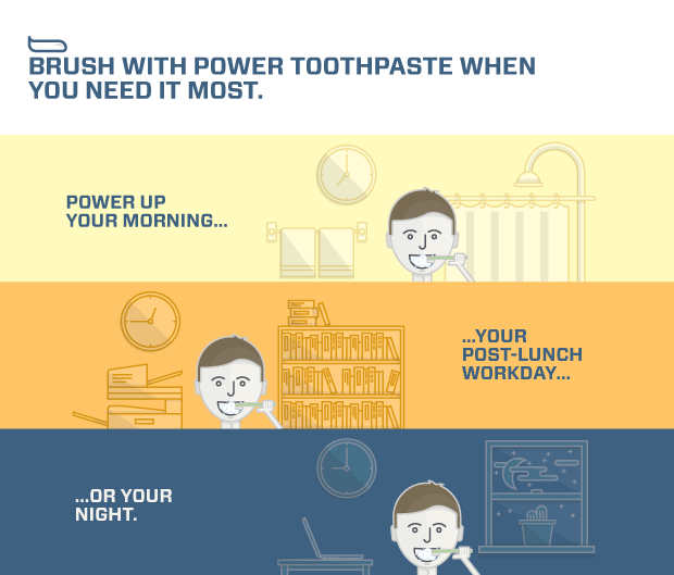 One brush with Power Toothpaste gives you the same energy boost as a cup of coffee, and much quicker.