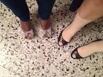 Here’s a photo of the day of my wedding day, the hills of the shoes where very tall and we wear the shoes days before to have our feet used to them. We made a photo to remember the fun we had wearing the shoes…