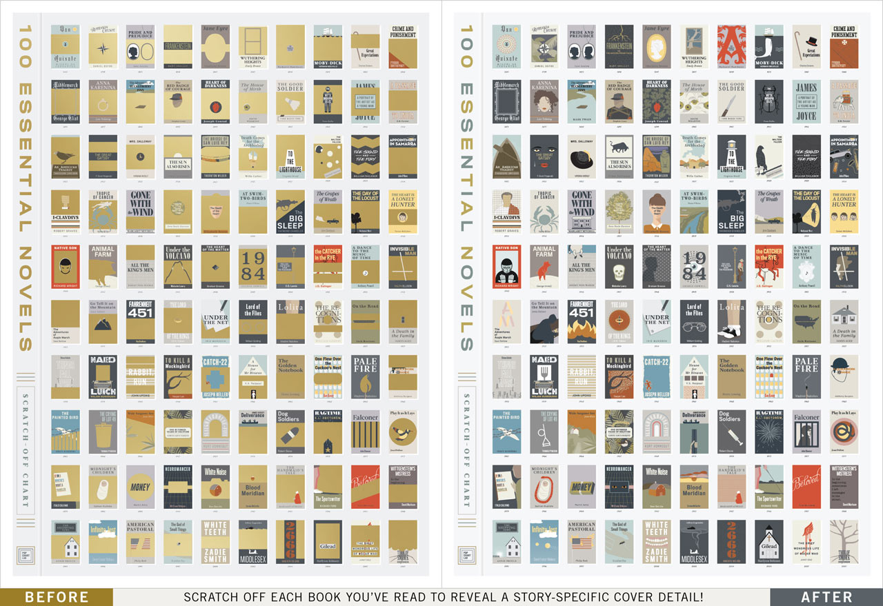 You have to take a look at this original poster from Pop Chart Lab, it has 100 essential novels, from 1605 to present to scratch when you had read them.