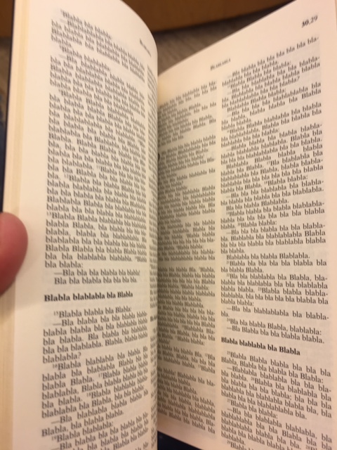 This a thin book that changes every word you can find in the Bible with a BLABLABLA. Take a look…