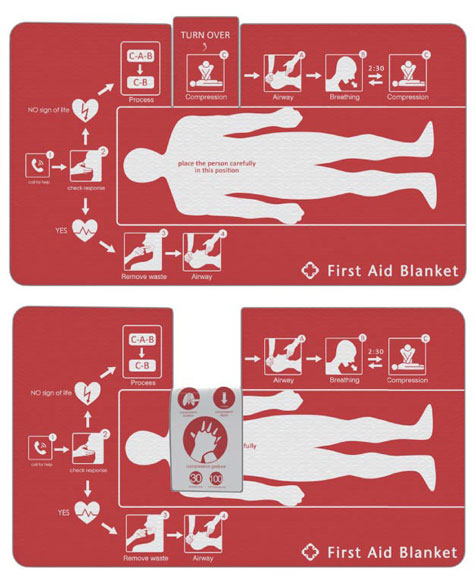 I have discovered this amazing blanket, really useful in emergency cases! It teaches step by step what to do if you need to make a First Aid!