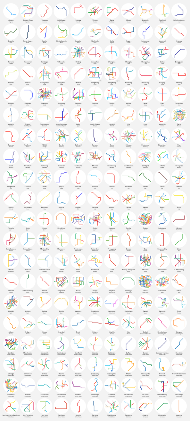 Metro Mini Metro Maps byPeter Dovak January 7, 2017November 17, 2018 Varietats 220 metro and light rail systems from around the world, shrunken and simplified by the artist Peter Dovak. Share this: Share on X (Opens in new window) X Share on Facebook (Opens in new window) Facebook Like Loading... Related Share this: Share on X (Opens in new window) X Share on Facebook (Opens in new window) Facebook Like Loading...