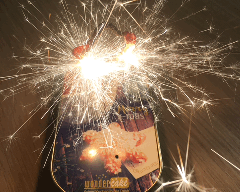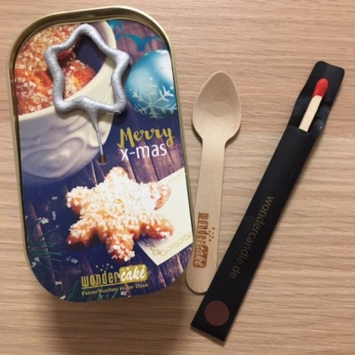 It’s curious that inside the box there’s a little wood spoon, match to fire the sparks and of course, the delicious orange/chocolate cake!
