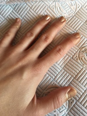 In the instructions it says that it doesn’t matter if you paint the skin near the nail, with some soap it will be removed quickly, but after 3 days of painting my nails, cleaned my hands a lot of times and showered myself, there’s still gold on my skin!