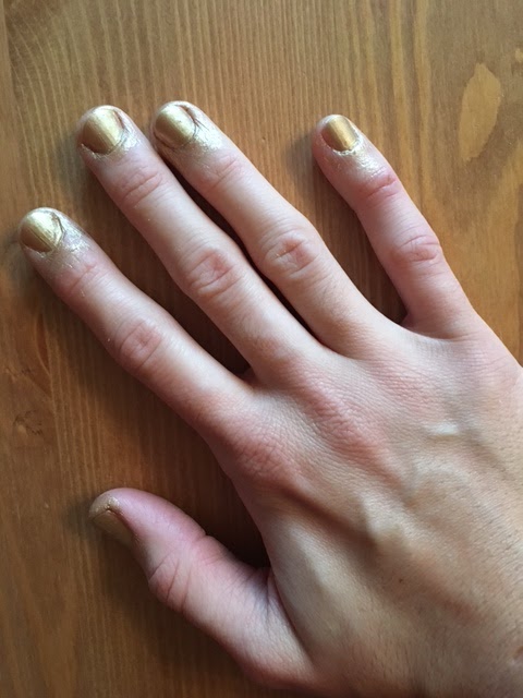 In the instructions it says that it doesn’t matter if you paint the skin near the nail, with some soap it will be removed quickly, but after 3 days of painting my nails, cleaned my hands a lot of times and showered myself, there’s still gold on my skin!