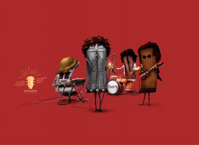 This funny advertising from Guitartrix is a campaign to promote musical lessons for bands.