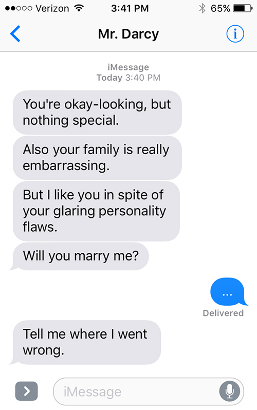 Humor · Literature If Literature’s Biggest Romantics Could Text by Sparknotes February 28, 2017November 17, 2018 Varietats Have some fun with these texts imagining that the Literature Biggest Romantics share their love with the mobile! The source is Spanknotes. Share this: Click to share on X (Opens in new window) X Click to share on Facebook (Opens in new window) Facebook Like Loading... Related Share this: Click to share on X (Opens in new window) X Click to share on Facebook (Opens in new window) Facebook Like Loading...