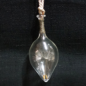 A pendant sometimes is something delicate and precious that you hold near your heart because it means more than the money you pay, I think one of these little glass works from the artist Yuko Yuko Matsumoto would be like that. These necklaces are hand made will a little plant or water inside, to look at it and enjoy while you are wearing it!