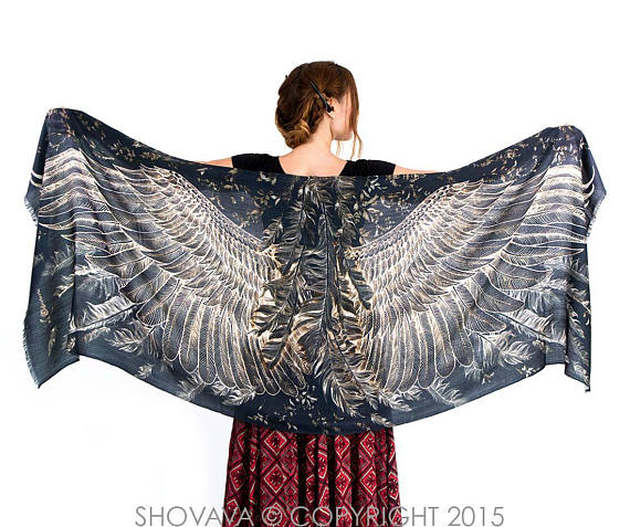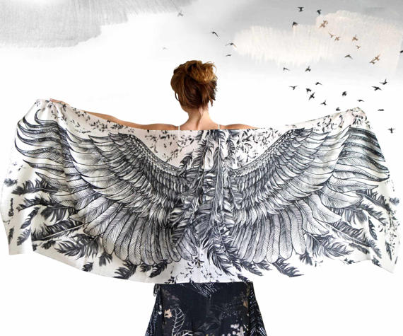 I have to admit I never go out without a scarf, I never knew why but I always feel cold on my neck, that’s why I have a big collection of scarfs; plain, colorful, with drawings… but let me say that none of them are as pretty as the wings the artist Shovava creates on her scarfs, I am sure when you wear them you almost feel you could fly!