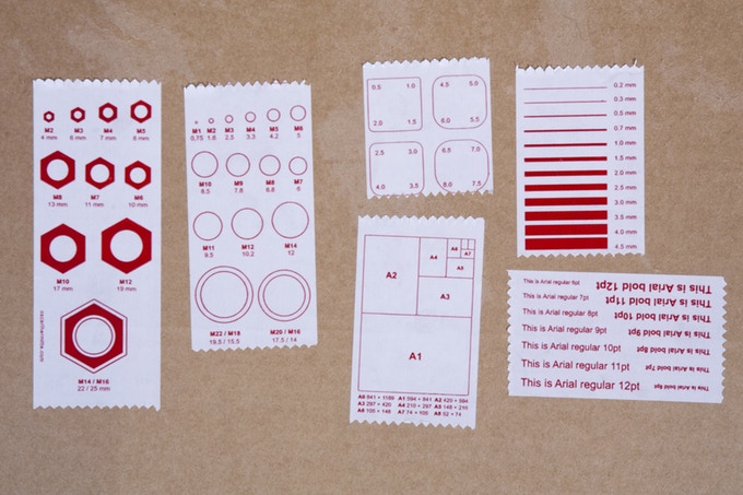 The Quickstarter is a collection of two rolls (made with vinyl) one with a Ruler and protractor and the other one with some formats and sizes…