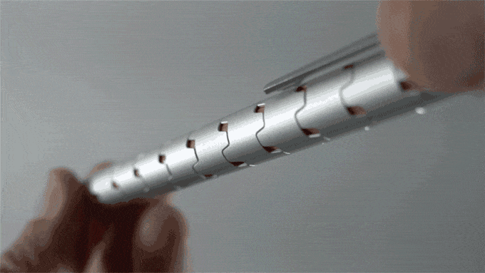 The SPECTA Pen is a made by aluminum alloy, is not only a pen but a stylus too; it has a stainless-steel clip to prevent it rolling through the table.
