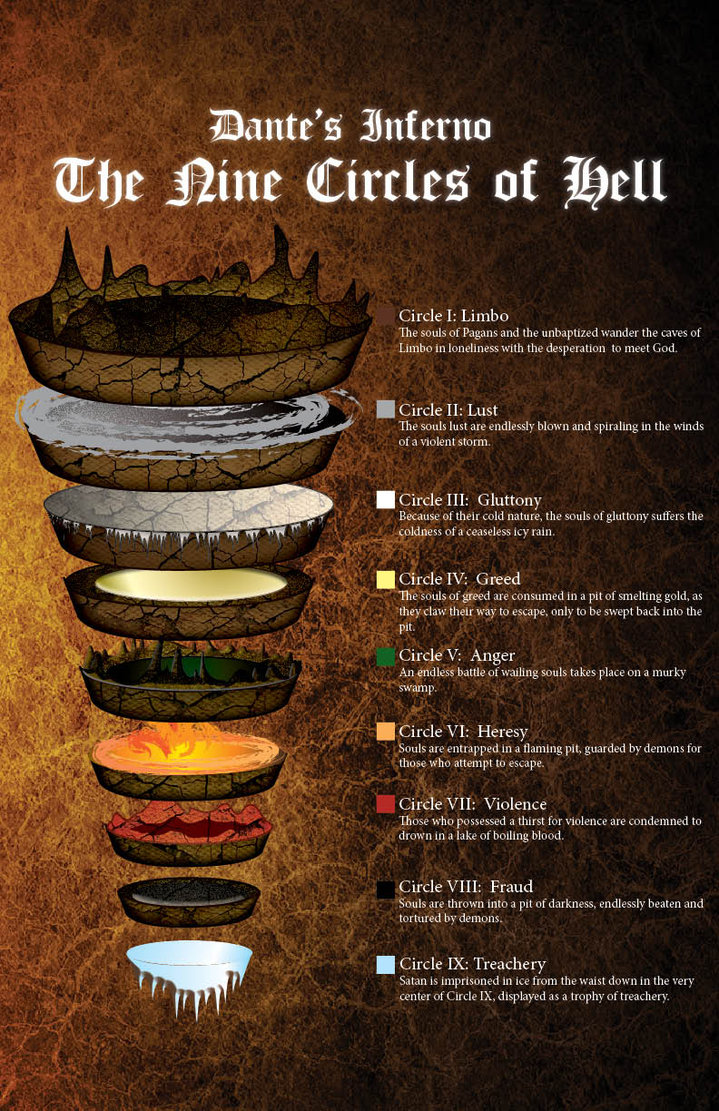I’ve always being curious about Dante’s Inferno, so when today I found this infographic showing the Circles of Hell by the artist Somnium Maris, I thought it would be interesting showing it to you, take a look…