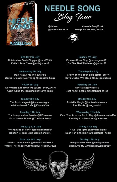 Do you remember when on April I shared with you the book cover of Needle Song by Russell Day? I have the pleasure to be part of the blog tour of the book, and let me say that the book has surpassed my expectations!