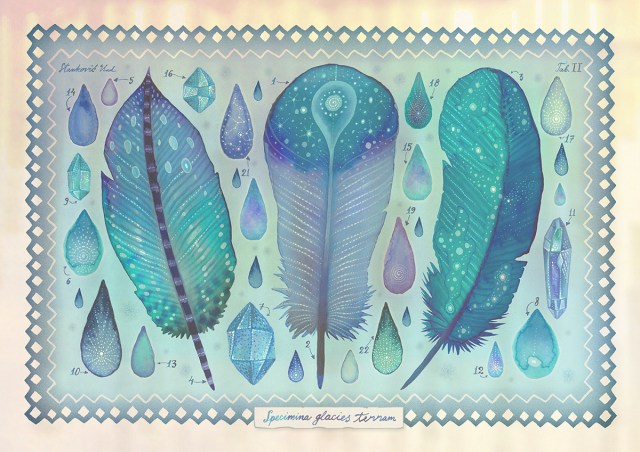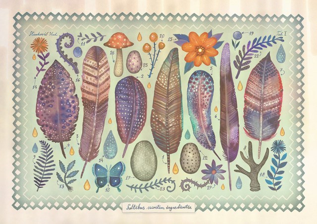 This is an illustration project by the artist VLAD Stankovic titled ‘Incantationibus silvarum’ (or ‘Enchantments of the woods’ in Latin :-)) inspired by the beauty and intricacy of feathers, flowers, leaves, various natural elements and the numerous experiences and visits to woodlands and forests around the world…