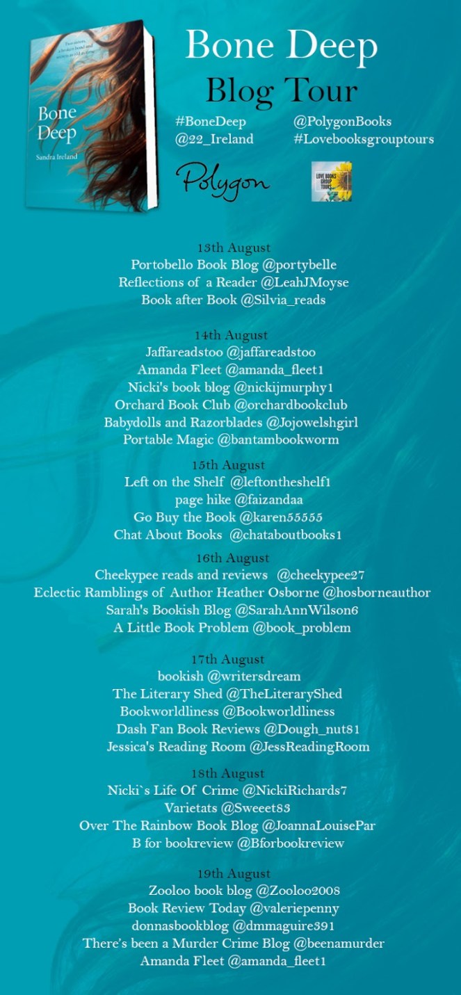 Bone Deep is a contemporary novel of love, betrayal, female rivalry, and murder – themes that echo across time. The enigmatic Lucie has arrived in the village of Fettermore, her past a seemingly closed book. She works for Mac, who is compiling a volume of local folk tales for publication but, at the same time, is determined to keep the truth of her own past from her grown-up son, Arthur.Over the course of a year, their lives and stories intertwine inexorably to reveal their secrets.