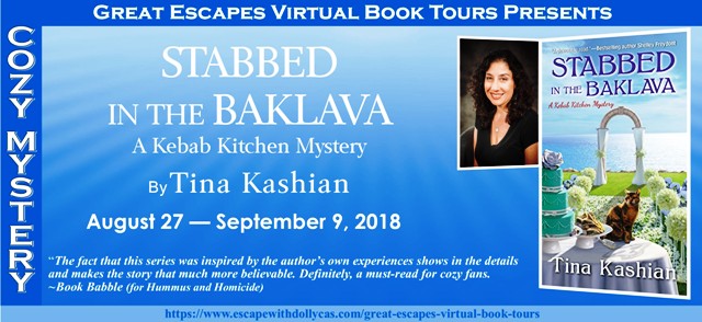 Tina Kashian spent her childhood summers at the New Jersey shore, building sandcastles, boogie boarding, and riding the boardwalk Ferris wheel. She also grew up in the restaurant business where her Armenian parents owned a restaurant for thirty years. She worked almost every job—rolling silverware and wiping down tables as a tween, to hosting and waitressing as a teenager.After college, Tina worked as a NJ Deputy Attorney General, a patent attorney, and a mechanical engineer. Her love of reading fiction for pleasure helped her get through years of academia. Her law cases inspired an inquiring mind of crime, and since then, Tina has been hooked on mysteries. The Kebab Kitchen Cozy Mystery series launches with Hummus and Homicide (3/18), followed by Stabbed in the Baklava and One Feta in the Grave by Kensington Books. Tina still lives in New Jersey with her supportive husband and two young daughters.
