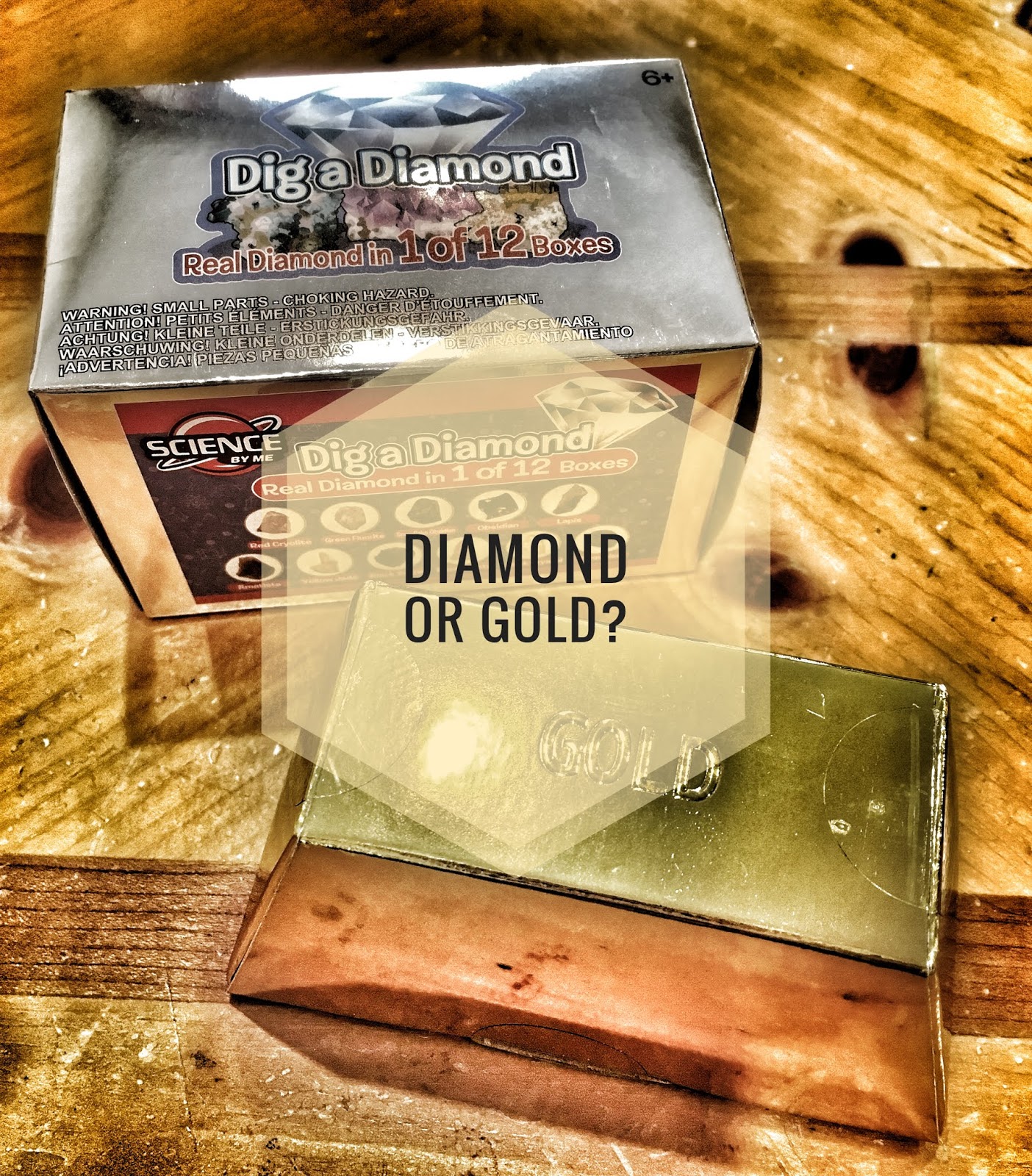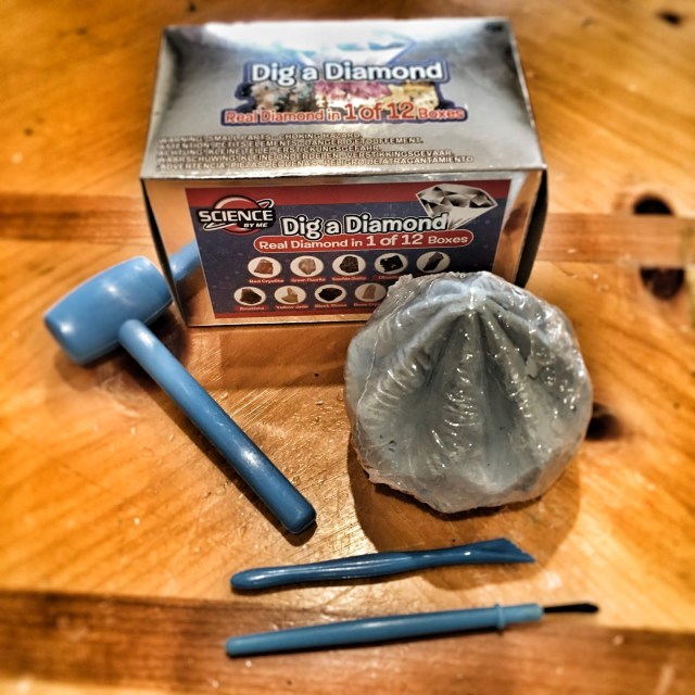 We started with the Dig Diamond, the tools were perfect for little hands, but I missed a magnifying glass to show my little one the mineral inside.
