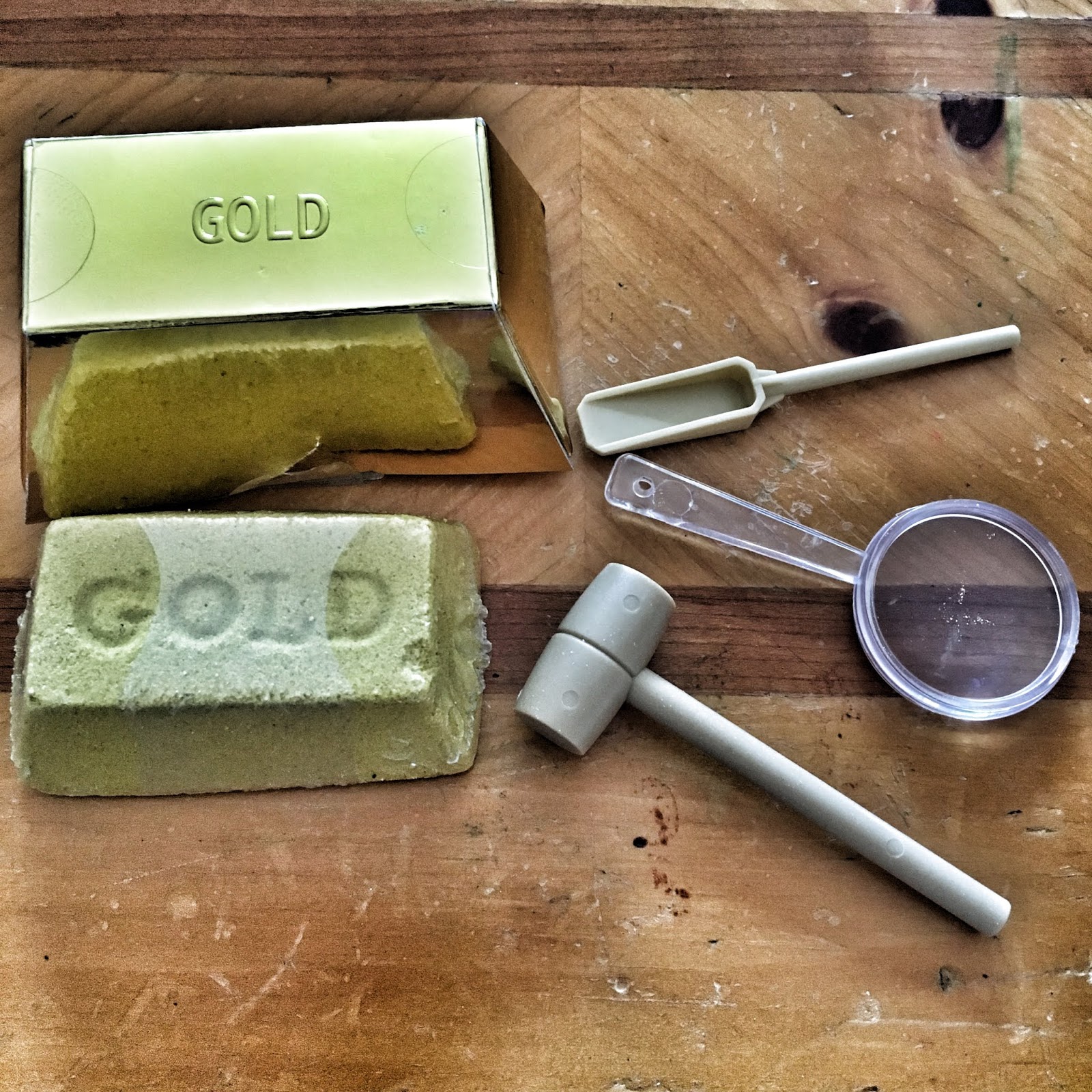 My little one had a great time playing with the gold, but didn’t know how to use the tools…