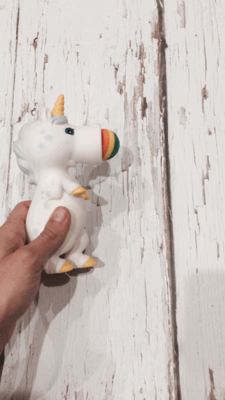 The Unicorn is really soft and easy to push and it comes with 6 rainbow foam balls, that I am sure you will lose around your home the first day you’ll play with the Unicorn, that’s why there are so many in the packet, you’ll always have another one!