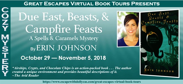 Due East, Beasts & Campfire Feasts in the seventh book in the Spells & Caramels series of paranormal cozy mysteries. If you like amateur witch sleuths, unbreakable friendships, and fascinating magical creatures, then you’ll love Erin Johnson’s page-turning adventure.