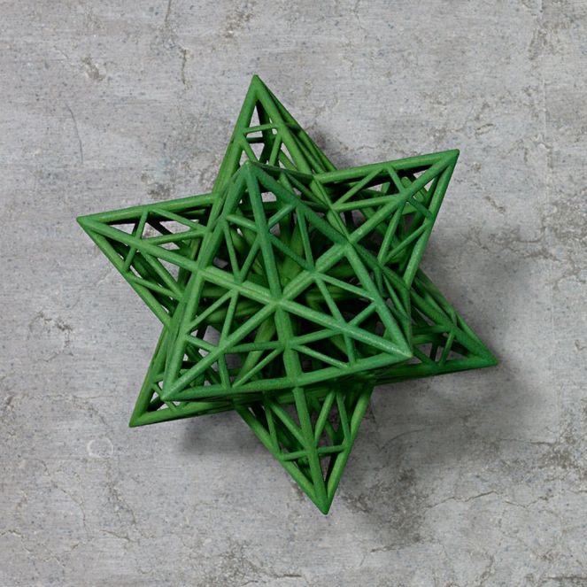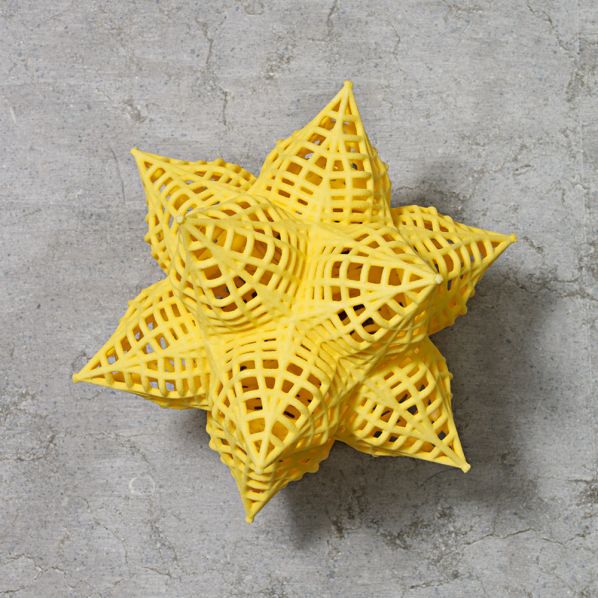 These ornaments were designed by Frank Stella exclusively for The Whitney in conjunction with the exhibition. The process of using digital files created from traditionally poured and cast shapes made in the 1990s, is explored in Laura Owen in Conversation with Frank Stella in the exhibition’s accompanying publication, Frank Stella A Retrospective. Mr. Stella has been experimenting with 3-D printing technologies since 2002. These pieces reflect Mr. Stella’s studio practice in not only form and vision, but as a result of his desire to explore and push the bounds of new methodology. There are pieces in Frank Stella: A Retrospective incorporate 3-D printed elements. Always conceived as a project that would be accessible to as many visitors to the museum as possible, this is an open edition. The seven stars differ slightly in size, with irregular proportions measuring approximately four inches on all sides.