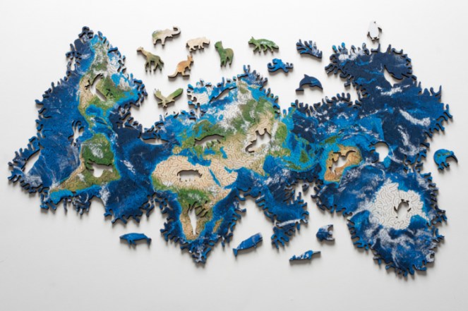 It not only has 442 pieces but also it has 16 figure pieces shaped like animals indigenous to different parts of the world: a kiwi on New Zealand, an alpaca in South America, a giraffe and rhino in Africa, and different whales and marine animals throughout the ocean; this makes the puzzle more original and curious at the same time. And there’s more, the Earth Puzzle’s pieces have more complex relationships, where pieces rotate 60 degrees to zip the seams of the map in different ways. This demonstrates how the infinity puzzles are not simply tiling puzzles but represent a broader range of possible borderless puzzles.