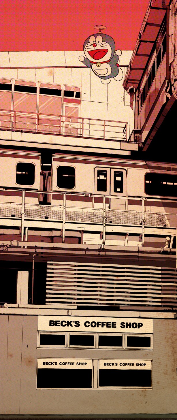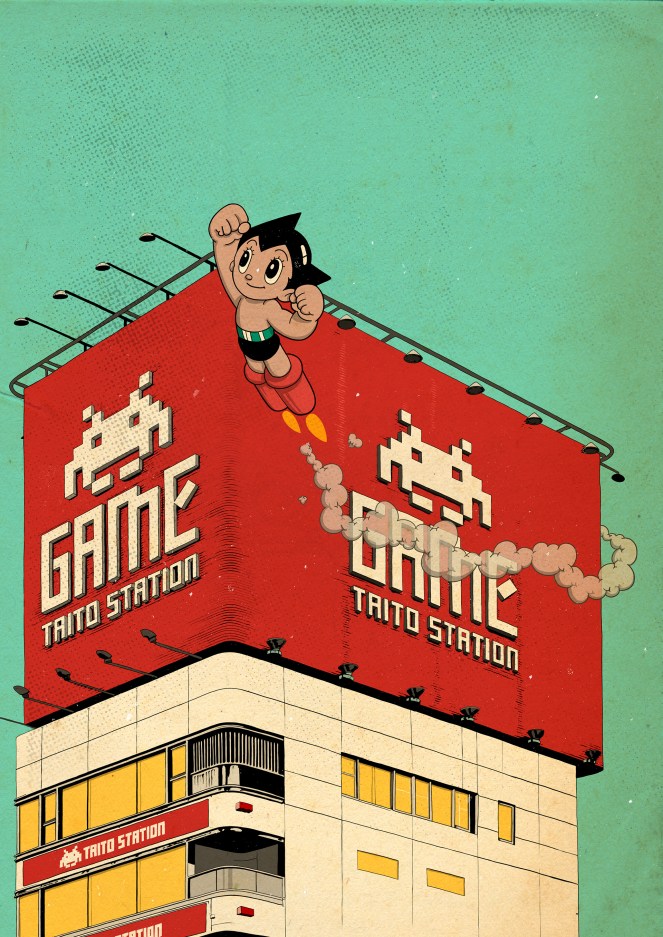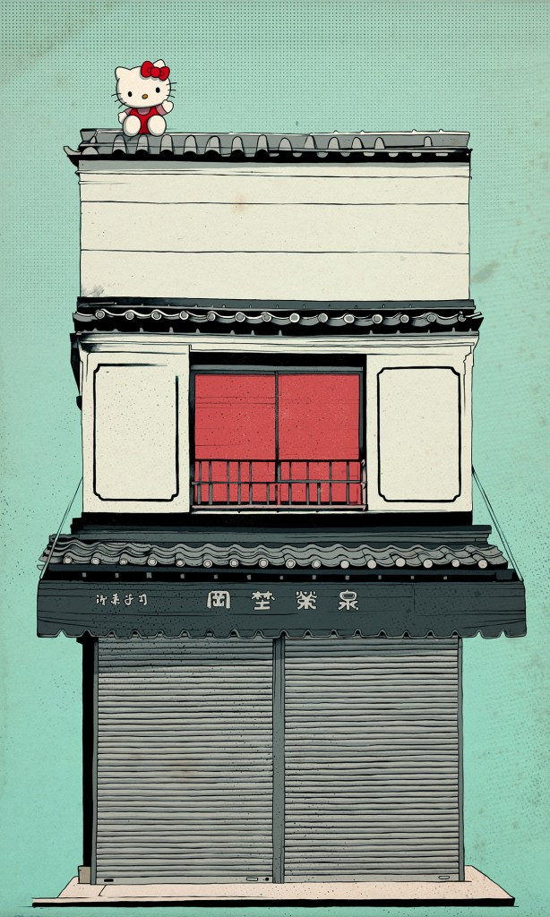 I love these beautiful designs created by the artist Oscar Llorens, mixing some typical Japanese buildings with some Japanese typical characters. Take a look…
