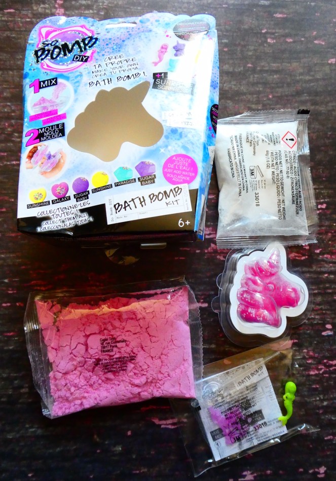 It comes with everything you need to do not only a pretty Unicorn bath ball but a couple more of bath bombs. I would recommend you to search for old ice moulds and use it with the remnants of the mixture. I am sure you’ll child will be delighted to have a couple of bomb days! 😉