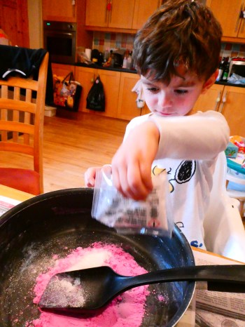 After mixing all the things we put the “brilliants” to one side of the unicorn and add the mix to it…