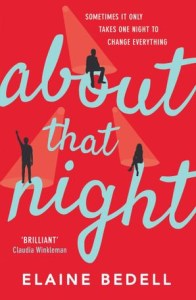 Elaine Bedell was a BAFTA award-winning TV producer before becoming Controller of Entertainment at the BBC and Director of Entertainment & Comedy at ITV. She has commissioned and produced some of the UK’s most popular entertainment shows, including The X Factor, Strictly Come Dancing, Take Me Out, Britain’s Got Talent, The One Show, Top Gear and Saturday Night Takeaway. She lives in Hackney and has two children. She is currently Chief Executive of the Southbank Centre. About That Night is her first novel.