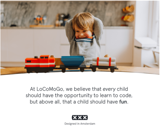 Children can start having fun right away with the LoCoMotive by creating their unique train tracks using tape. The Color Car then enables them to learn basic code logic, entirely screen-less. Each additional train car adds a new function and is programmable through the LoCoMoGo app, therefore, creating more and more fun opportunities to play and code with.