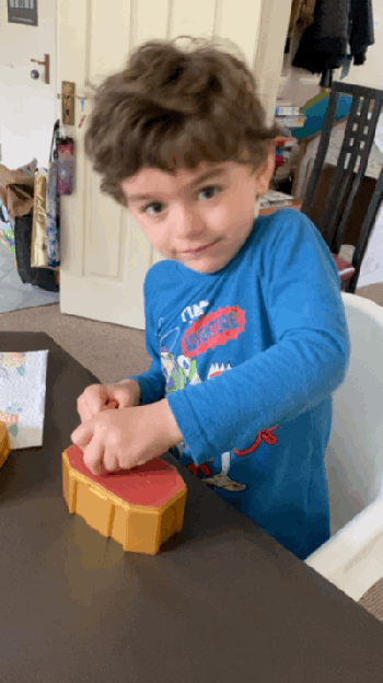 I’ll admit that my son doesn’t like much the blue rock, I think it’s too sticky for his taste, and always remove it quite quickly without playing with it. As you can imagine depending on the kid they will enjoy it more or less…!