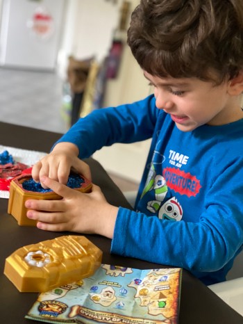 But what he loves most is trying to open the treasure box, he loves it! Putting the key on the hole and open the box is his favourite part. He loves to open and close them non-stop! We haven’t found any gold yet, but we are buying so many of them that one day or other I am sure we’ll be lucky, even if we find it or not my son enjoys playing with it.
