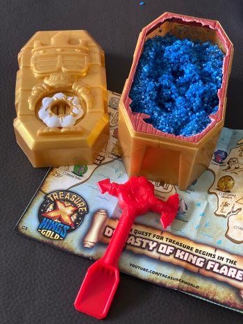 So, today I’ll introduce you to the Treasure X Kings Gold, if you check the official homepage by Moose Toys you’ll see that there’s a high variety of different Treasure X, I only tried this variety so I can’t talk about the other ones! They are recommended for 5 years old children, there are really small pieces that could be dangerous for the little ones, so be careful if you purchase them.