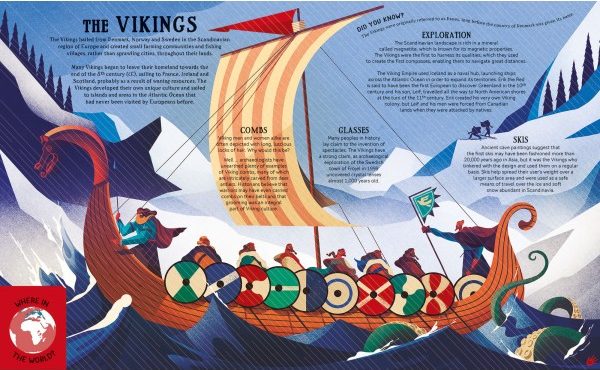 I don’t think this is only a book for children, this is a book for adults too, an interesting and visual infographic about all the civilisations humans have had and what we learnt from them; music, cities, buildings, alphabet… I think this book has been created with a lot of detail and interesting facts to keep any reader interested, and with beautiful illustrations and colours to make the reader entertained and to keep looking and discovering more details each time to look at the pages. But what I loved is that you can find female leaders in this book, I’ll have to admit that I didn’t know any of the female characters that this book talks about. Sadly I’ve never studied any women during my history lessons so I am super happy that my son will learn that women are important too and have an important part in history, not only at home! I found interesting that there’s a little map on every page showing the reader where in the world the civilisation was based, and my favourite thing is that there are snippets of interesting/curious facts on each page, I’ve learned so much with this book!