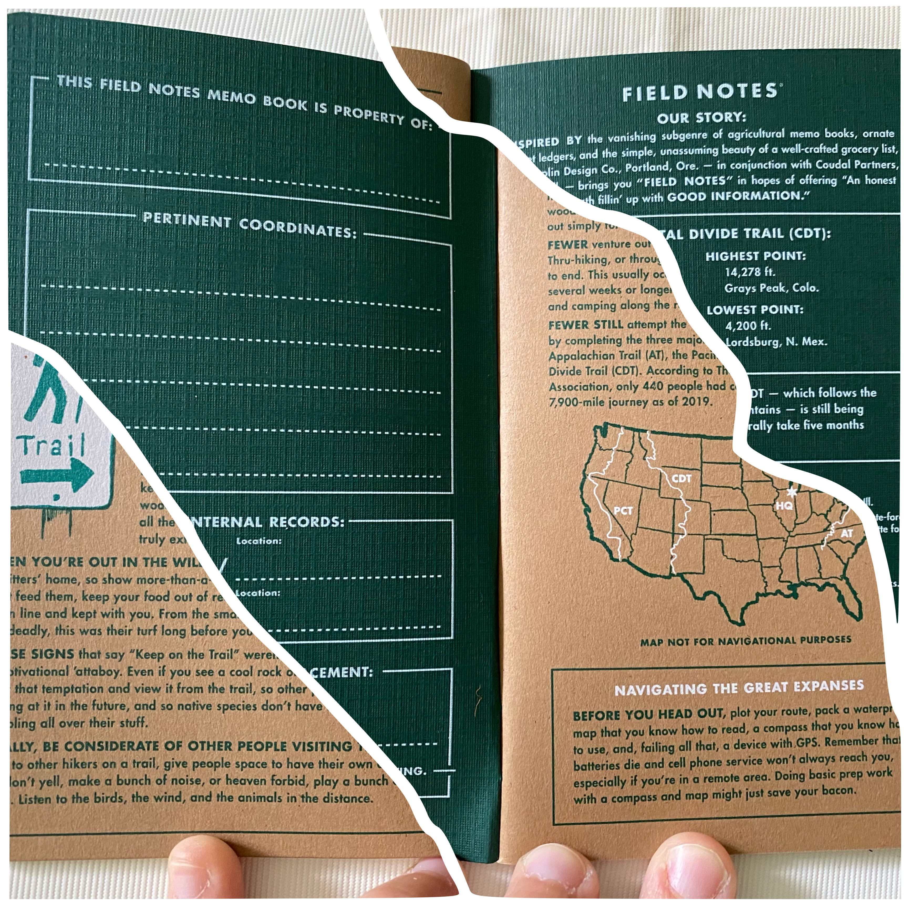 Do you want to know what I love about these notebooks? That they are handy, sturdy and fit to any pocket; sometimes you don’t need a big notebook, just a few pages to write your stories/draws; and that’s why the Field Notes are perfect. Of course I can’t forget that there are never two similar editions, this one is called “Trailhead”; with some hike guides and specifications.