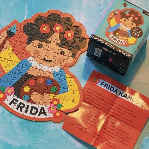 First let’s talk a little bit of what we could find inside; a 70 piece shaped puzzle featuring one of these six amazing women; Amelia, Rosa, Sally, Malala, Frida, or Cleopatra. Inside you’ll find one of these inspiring characters and some of their story.
