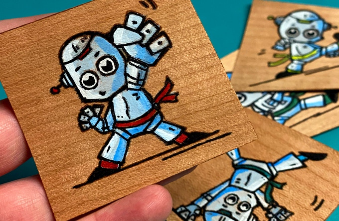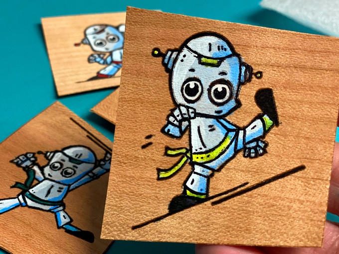 In this case, we’ll be able to purchase one of the tiny and cute robots that the artist Eric Deisen paints; all handmade and painted on wood veneer.