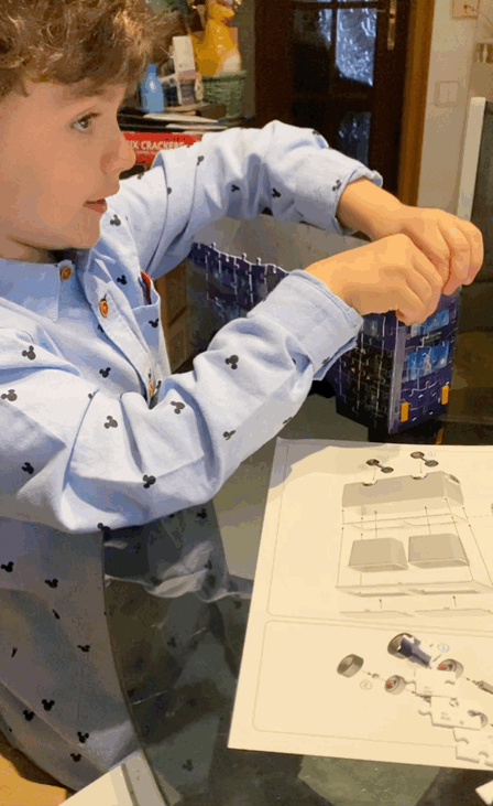 Let’s talk a little about the process of mounting it, it’s easy, you only have to follow the numbers that are written on the back of the pieces and the direction that is indicated on them. Don’t worry there is a booklet of how to put the numbers, my son is 5 and he did it by himself, without glue!