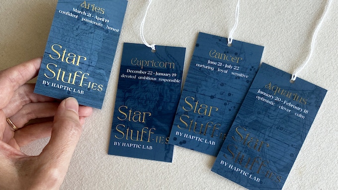 Each design in the collection coveys the characteristics of its star sign, and will come paired with a special birthday tag that lists its associated astrological traits.