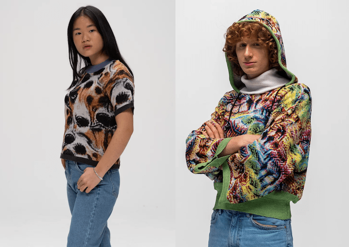 People wearing the Manifesto Collection garments are not recognized as such by real-time recognition cameras, that are confused by the algorithm in the pattern. This confusion makes the camera detect dogs, zebras, giraffes, or small knitted people inside the fabric, instead of the person wearing the clothes.