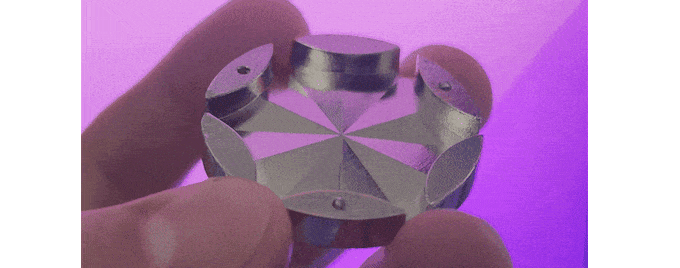 When you ‘roll’ a FlipDie dice coin, a solid steel ball bearing chaotically ricochets around the inside of the dice coin. As the FlipDie settles on a flat surface, the bearing slides down one of the sloped channels to reveal itself along the edge of the coin.