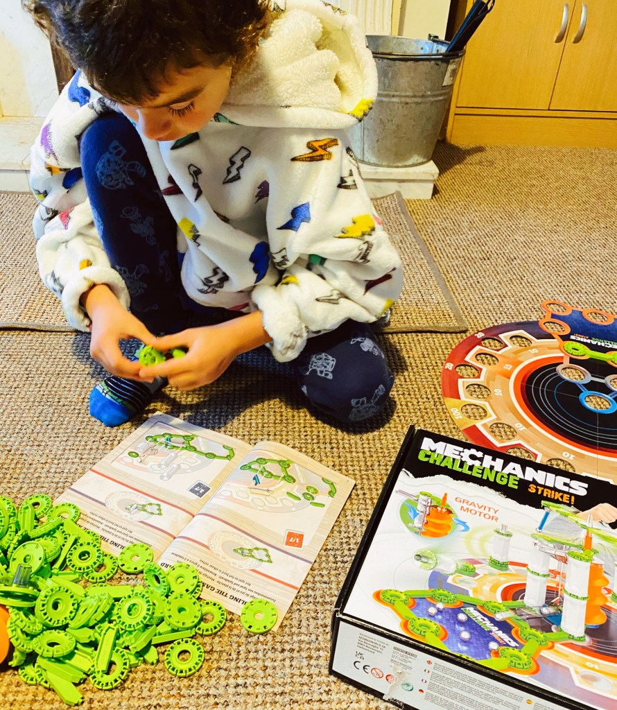It’s not difficult to mount it if you’ve played with other Mechanics games, you should be careful with the position of the green pieces, they are the important ones. My son loved to mount it, but I had to change a few greens because they were backsided!