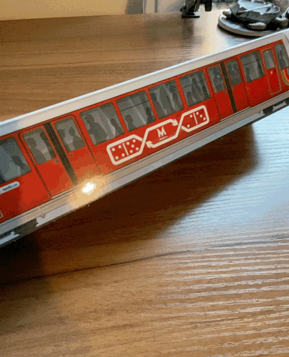 So, let’s talk a little bit about this special board game called “Metro Domino”, first of all, the domino pieces are the ones that we all know, black and white, heavy on your fingers and sturdy to resist any little hands! But, want to know what’s the best part? It comes with a super cute train to keep you pieces tidy!