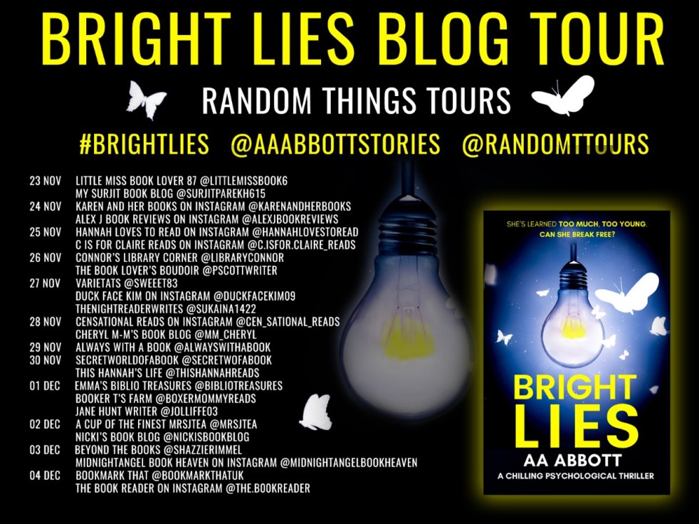 Ready to discover another great book for this 2020? Take a look… Bright Lies by AA Abbott Genre: Psychological ThrillerSource: Random Things ToursRating: 4/5Publisher: Perfect City PressAmazon, Hive About The Book Emily’s dreams come true when her mother marries wealthy painter, David. Thanks to him, Emily’s artistic talents shine. Then he starts teaching her things a 14-year-old shouldn’t know. When Emily escapes from… Continue reading Bright Lies by AA Abbott – Blog Tour