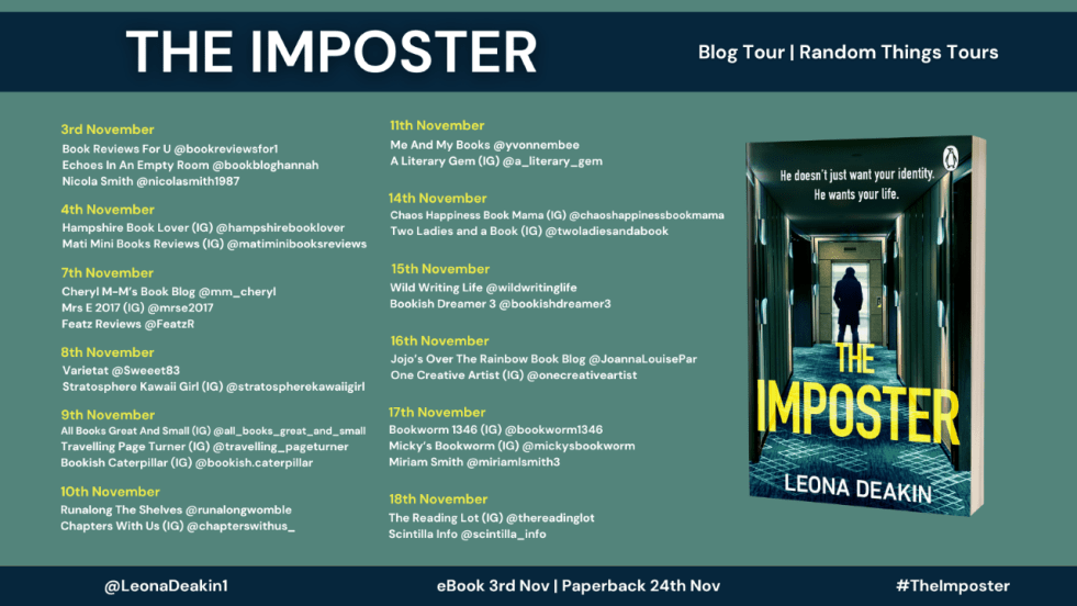Ready to discover another great book for this 2022? Take a look… The Imposter by Leona Deakin Genre: ThrillerPublisher: Transworld DigitalSource: Random Things ToursRating: 4/5Amazon, Waterstones, Hive About The Book He doesn't just want your identity. He wants your life…No one sees him coming.A stock-market trader is pushed from a high-rise balcony and falls to his death on the street below. The only… Continue reading The Imposter by Leona Deakin – Blog Tour