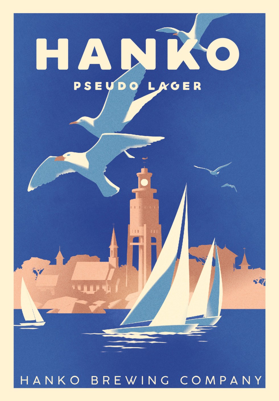 Finnish Beer Company, Hanko Brewing, has used these images for labels, coasters, postcards and posters in and around their brewhouse in Hanko, famous Finnish seaside and vacation town. Made by the artist Mads Berg.