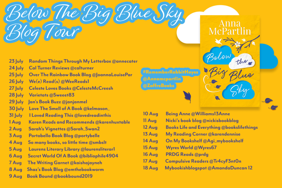 Ready to discover another great book for this 2019? Take a look… Below the Big Blue Sky by Anna McPartlin Genre: Fiction Publisher: Bonnier Zaffre Source: Compulsive Readers Amazon, Hive About The Book When forty-year-old Rabbit Hayes dies, she leaves behind a family broken by grief. Her mother Molly is distraught and in danger of losing her faith. Her… Continue reading Below the Big Blue Sky by Anna McPartlin – Blog Tour